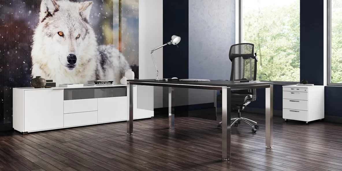 - Menedżerska komoda stojąca z wyraźnym, nowoczesnym charakterem – idealna do gabinetu szefa czy sali konferencyjnej