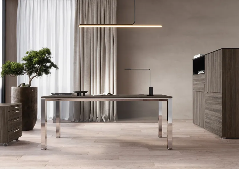 Elegancki i reprezentacyjny stół konferencyjny z linii Arcadius, zaprojektowany z myślą o nowoczesnych salach spotkań oraz prestiżowych przestrzeniach biurowych. Charakteryzuje się minimalistyczną formą, wysoką jakością wykonania i wyrazistym, gabinetowym stylem.