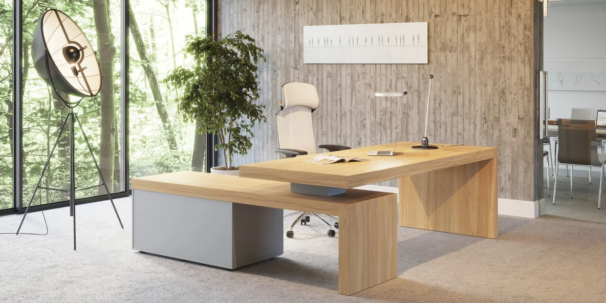 Biurka wykonane z pogrubionych płyt komórkowych oklejonych wytrzymałym laminatem HPL.