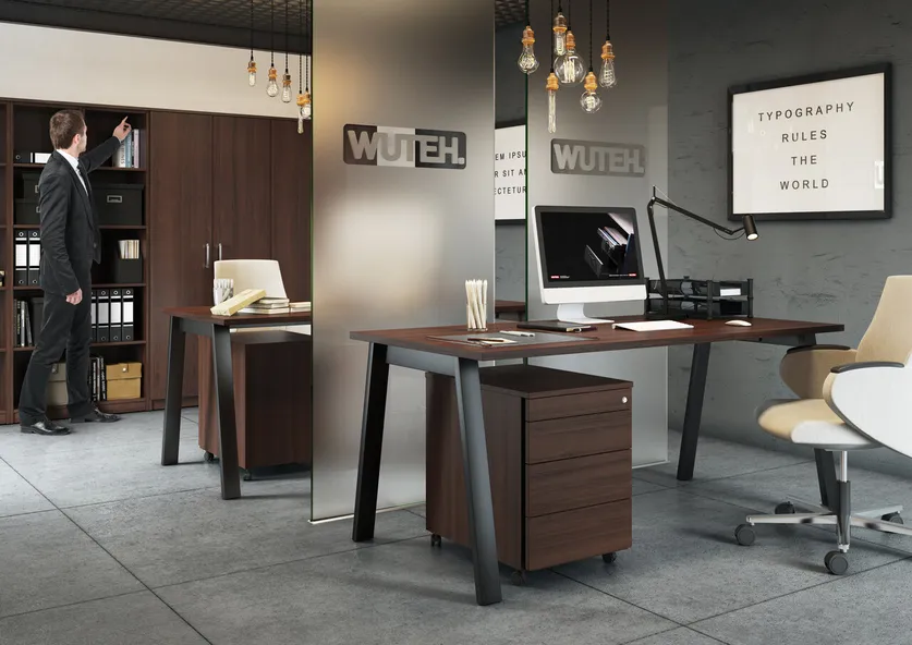 - Biurko wyposażone w regulatory poziomu z możliwością ich wykręcenia do 15mm