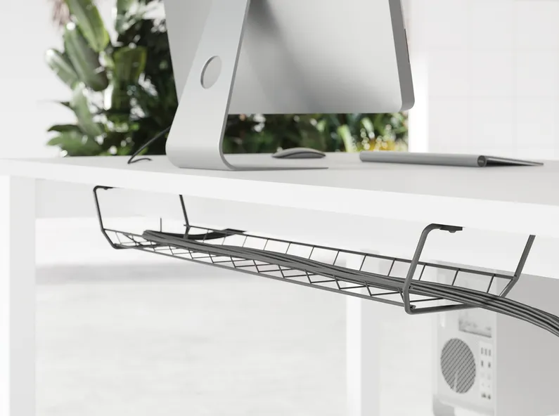 Kanały kablowe służą do uporządkowania okablowania. W ofercie mamy kanały poziome – podbiurkowe oraz kanały kablowe pionowe, potrzebne do przeprowadzenia okablowania od biurka do podłogi.