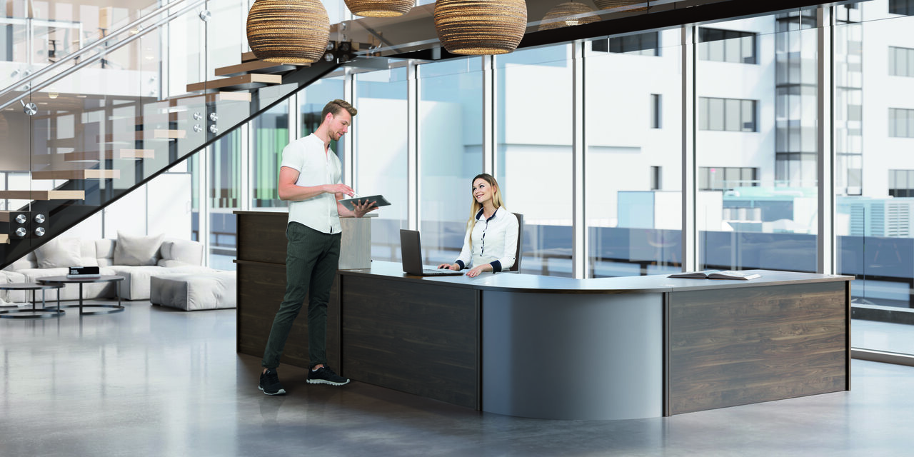 VEGA to system modułów, na bazie których stworzymy zarówno kompaktową, dostosowaną do zastanych warunków ladę recepcyjną, jak i rozbudowaną, wieloosobową przestrzeń pracy.