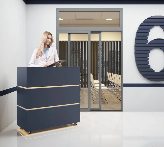 - Zaprojektowana z myślą o niewielkich przestrzeniach recepcyjnych – oferuje elegancję w wersji mini, idealna do biur, gabinetów i punktów obsługi