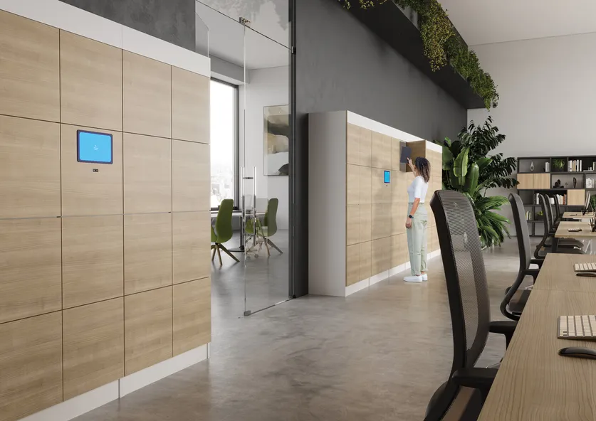 Locker PLUS jest przeznaczony dla biur oraz zakładów produkcyjnych. Jego szerokie zastosowanie pozwala na indywidualne dopasowanie do potrzeb użytkowników. Skrytki pozwalają na bezpieczne przechowywanie ważnych dokumentów lub prywatnych rzeczy. Można je otwierać za pomocą telefonu, kodów QR lub karty pracowniczej (kontrola dostępu).