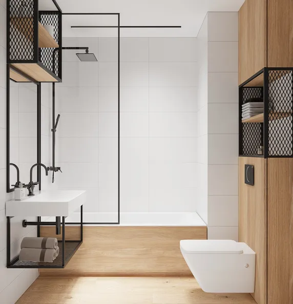 - estetyki spójnej z resztą budynku (neutralne kolory, proste formy, ciepłe akcenty drewnopodobne).