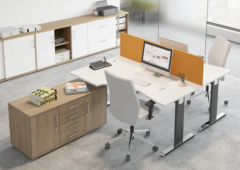 - Opcjonalne kontenery, szafki przybiurkowe i przystawki do rozbudowy miejsca pracy