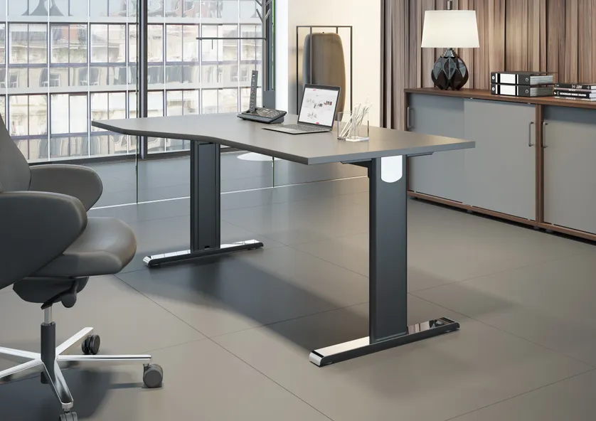 - Dostępność różnych wymiarów, kształtów i kolorów blatów oraz możliwość doboru koloru stelaża z palety RAL