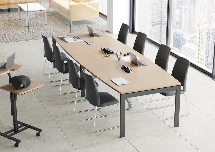 - Oferta obejmuje stoły w wielu wariantach – od kompaktowych stolików do małych sal spotkań po rozbudowane stoły do dużych sal konferencyjnych