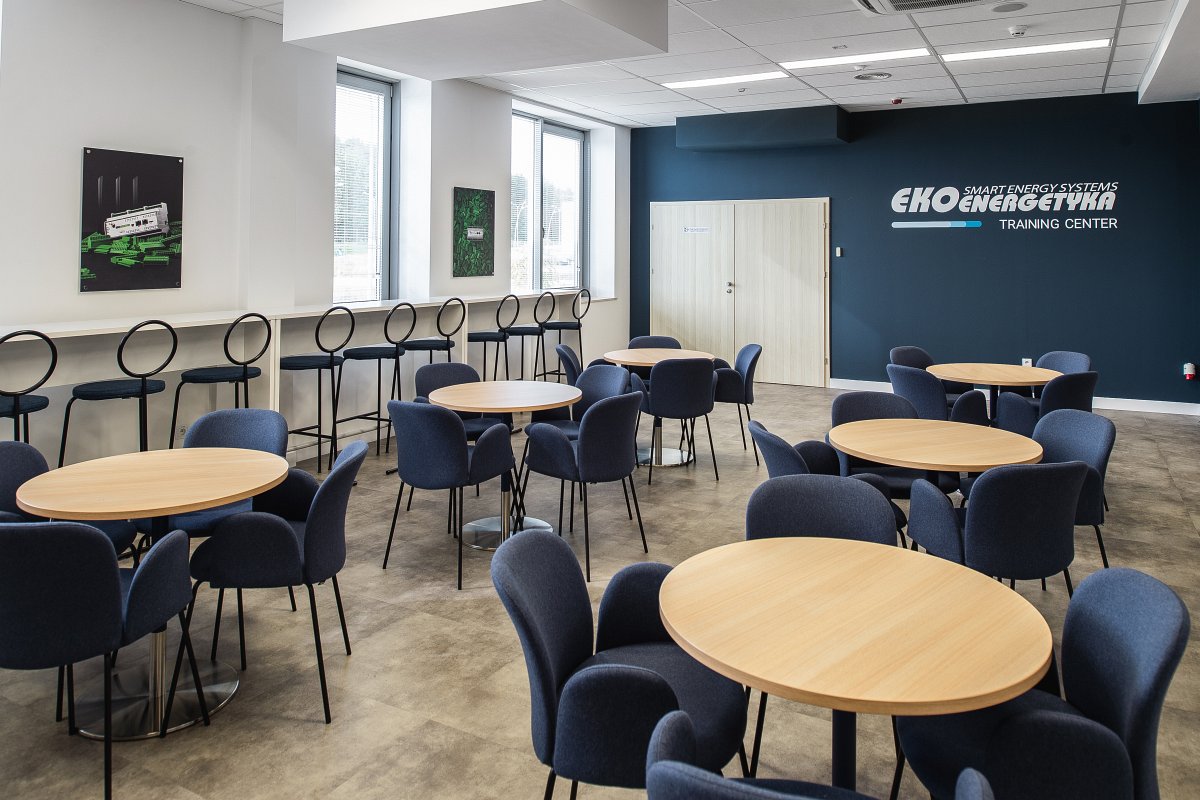 Głównym celem projektu było stworzenie przestrzeni szkoleniowej, której kolorystyka nawiązuje do nowego logo firmy, tworząc spójną i inspirującą atmosferę. Wybór mebli zapewnia łatwą i szybką rearanżację sal, umożliwiając dostosowanie przestrzeni do różnych form szkoleń i metod nauczania.