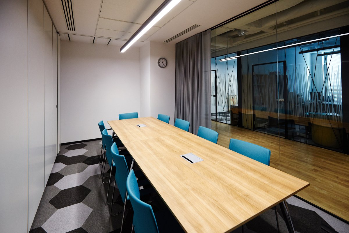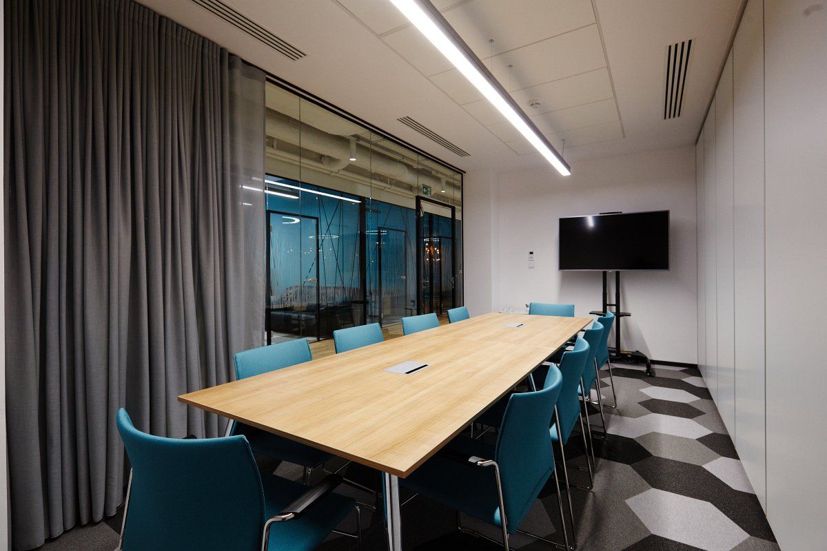 Stworzyliśmy dynamiczną, kolorową przestrzeń pracy, która łączy wygodę z kreatywnością. Znajdziesz tu huśtawki, pufy, przeszklone pomieszczenia oraz przestronną strefę wspólną, idealną zarówno do relaksu, jak i współpracy. Gabinety ozdobiono oryginalnymi dekoracjami z lin żeglarskich.